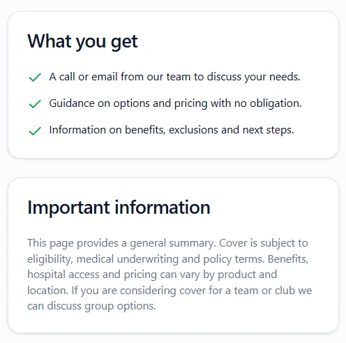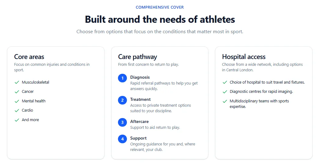 Comprehensive Cover – Tailored to sporting life with options for musculoskeletal, cancer, mental health, cardio and more.